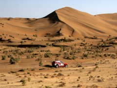 9月11日,2014中國越野拉力賽結(jié)束了第11賽段一百四戈壁賽段比賽的爭奪。圖為本賽段精彩瞬間。