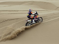 北京時(shí)間1月14日凌晨,2015年達(dá)喀爾拉力賽結(jié)束了第9賽段比賽的爭(zhēng)奪,本賽段從伊基克出發(fā),終點(diǎn)設(shè)在卡拉馬,賽段全長(zhǎng)539公里,其中特殊賽段全長(zhǎng)451公里。摩托車組本田車隊(duì)羅德里格茲拿到賽段最快,總成績(jī)榜上領(lǐng)跑的依然是衛(wèi)冕冠軍KTM車隊(duì)西班牙車手科馬。