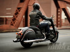 印第安2016款酋長黑馬(Indian Chief Dark Horse )重型巡航車日前于芝加哥國際摩托車展上正裝亮相,除局部配以金屬電鍍件外,周身啞光黑色涂裝將Chief Dark Horse的神秘感提升到極致。
