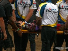 悉尼當?shù)貢r間9月17日,紅牛X-FIGHTERS車隊繼續(xù)摩托車特技世界巡回表演,眾多摩托好手空中曼舞,各種高難度動作奪人眼球。一位車手在表演中不慎失去重心跌落在地,被擔架緊急抬離現(xiàn)場。