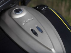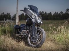 近日,Roland Sands Design公布了一輛以印第安為原型定制的全新車型的剪影照,這輛車將融合tracker、 dragster以及cafe racer這三種風格!這輛車以2014款I(lǐng)ndian Chieftain為基礎(chǔ)打造,不過Roland Sands Design只保留了這臺車的發(fā)動機和變速器,車架則是重新設(shè)計焊接而成,并且把原來雙搖臂改為了單搖臂,其余車身部件也全部重新改裝,可以說是脫胎換骨。