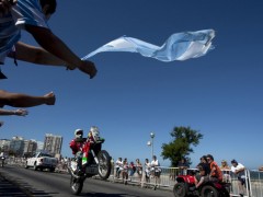 2011年12月31日,西班牙摩托車手科馬在達喀爾拉力賽的發(fā)車儀式上亮相