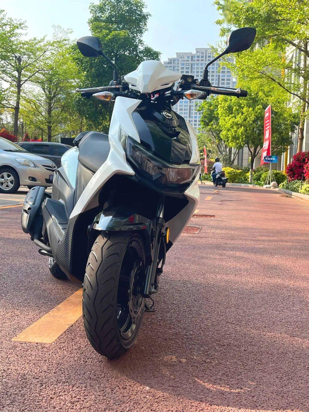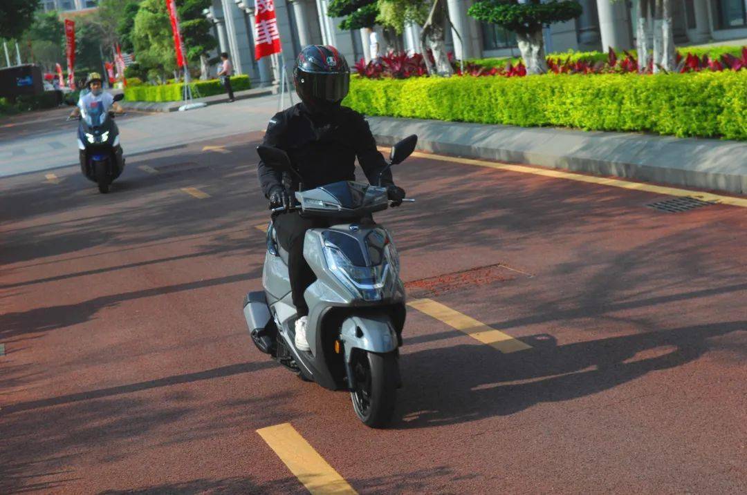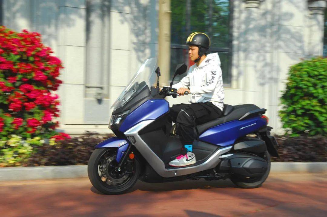壓軸的當(dāng)然是MAX SYM400了。此車的小名叫“巡弋勁旅”,我們認(rèn)為,開頭的“巡”和最后的“旅”是最能代表其特性的。這是一款在實際駕馭中能讓你感受到動力充沛、扎實易控、駕乘舒適的大羊,都市巡游和長途奔襲是它的強(qiáng)項,而導(dǎo)入轎跑級車身設(shè)計手法優(yōu)雅又不失動感的造型,也賦予了該車出眾的高顏值。