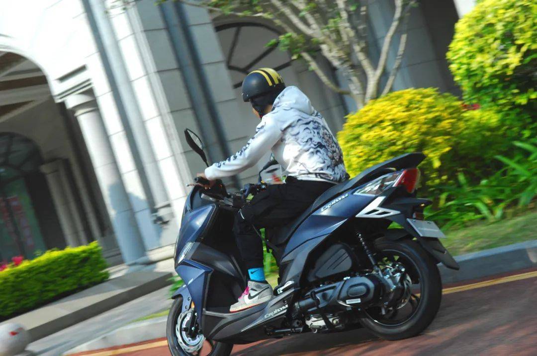 整車燈光信號均為LED光源、液晶顯示屏,配 13寸輕量化鋁合金輪輞、 KEYLESS智能鎖、側(cè)腳架斷電系統(tǒng)(實測非常靈敏),采用賽車級單后叉設(shè)計、短排氣管、后中置避震器、半熱熔胎以及 BOSCH10 ABS系統(tǒng),造型動感、調(diào)校偏運動風(fēng)格,輔以水泥灰、消光黑、純白三種配色,是一款迎合年輕車迷口味的動感勁羊。