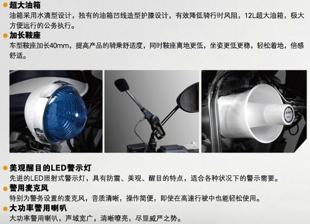 雷霆出擊盡顯雄風(fēng),本田在中國(guó)第一款125ccOTR技術(shù)發(fā)動(dòng)機(jī)WH125J-8警車。WH125J-8警車根據(jù)中國(guó)人的身型特點(diǎn)和駕駛習(xí)慣研發(fā),根據(jù)人體工程學(xué)精準(zhǔn)設(shè)置的尺寸讓駕駛更加得心應(yīng)手。加長(zhǎng)的鞍座、超大的油箱、明亮的前大燈,人性的考慮體現(xiàn)實(shí)用價(jià)值,全新搭配的OTR技術(shù)發(fā)動(dòng)機(jī),要賦予WH125J-8警車更強(qiáng)勁動(dòng)力,更出色的加速性能,一路雷霆出擊,盡顯雄風(fēng)。