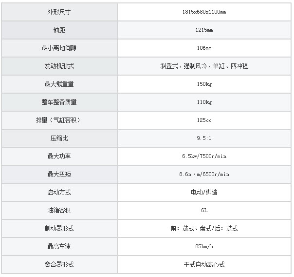 五羊本田喜俊125踏板摩托車(Joying me)參數(shù)
