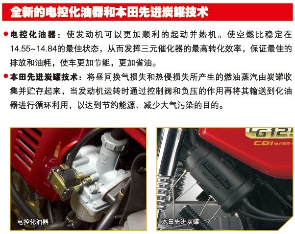 本田先進(jìn)炭罐技術(shù): 將晝間換氣損失和熱侵損失所產(chǎn)生的燃油蒸汽由炭罐收集并貯存起來,當(dāng)發(fā)動機(jī)運(yùn)轉(zhuǎn)時通過控制閥和負(fù)壓的作用再將其輸送到油器進(jìn)行循環(huán)利用,已達(dá)到節(jié)約能源、減少大氣污染的目的。