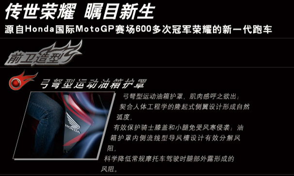 弓弩型運(yùn)動(dòng)油箱護(hù)罩,肌肉感呼之欲出;契合人體工程學(xué)的隆起式側(cè)翼設(shè)計(jì),形成自然弧度,有效保護(hù)騎士膝蓋和小腿免受風(fēng)寒侵襲;油箱護(hù)罩內(nèi)測(cè)流線型風(fēng)槽設(shè)計(jì)有效分解風(fēng)阻,科學(xué)降低常規(guī)摩托車駕駛時(shí)腿部外露形成的風(fēng)阻。